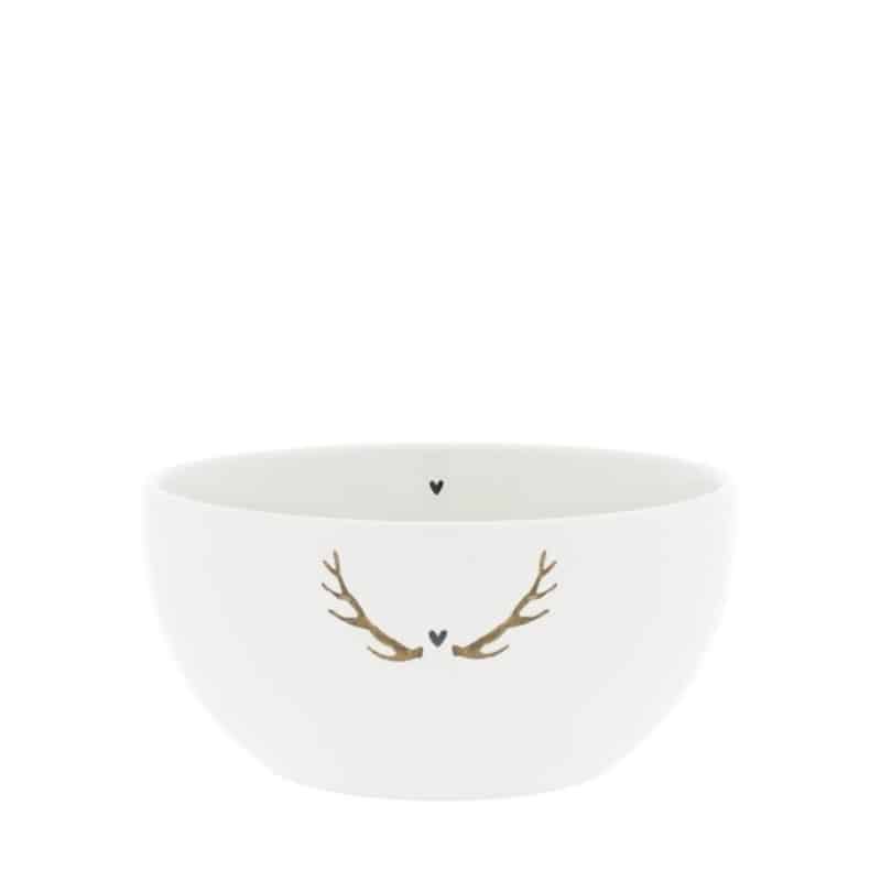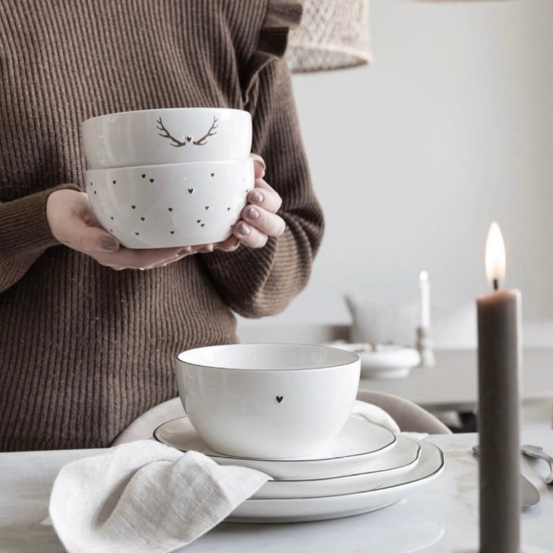 Die Schale ist aus feinem Steinzeug gefertigt, robust genug für den Alltag, aber edel genug, um jeden Tisch in Szene zu setzen. Ihr weißes, mattes Finish und das zarte Hirschgeweih mit kleinem Herz in der Mitte bringen eine elegante Natürlichkeit auf den Frühstückstisch. Ein Design, das nicht laut wirkt, sondern durch seine Ruhe beeindruckt – genau das, was den Stil von Bastion Collections so besonders macht.