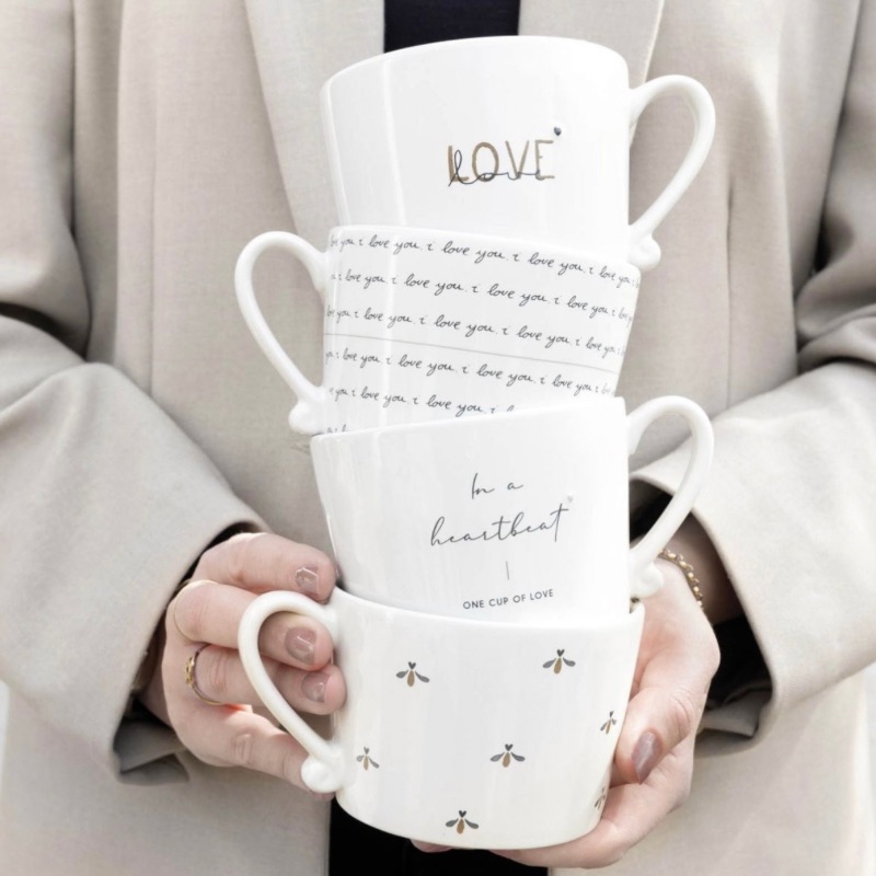Bastion Collections Tasse Heartbeat dieses Charmante Modell der beliebten Bastion Collections überzeugt mit schlichter Eleganz und einer liebevollen Botschaft im Herzen. Die Tasse "White / in a heartbeat" ist mehr als nur eine Tasse - sie ist ein Statement für stilvolle Kauffeepäuschen und kleine Alltagsfreuden. Mit einem Durchmesser von ca. 10cm, einer Höhe von 8cm und einem Fassungsvermögen, das ideal ist für deinen Lieblingskaffee, Cappuccino oder Tee ist, wird diese Tasse schnell zum neuen Lieblingsstück in deiner Küche. Der handgeschriebene Schriftzug "In a heartbeat" verleiht ihr eine persönliche Note - ideal auch als Geschenkidee für Herzensmenschen.